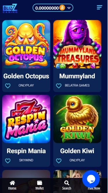 Blizz has neat, effective design, with pretty graphics and artistic details. The casino logo resembles the Bitcoin symbol; actually it’s the Unicode character for this popular cryptocurrency. No doubt there! This is a crypto-friendly gaming brand where you can put your crypto funds to play.