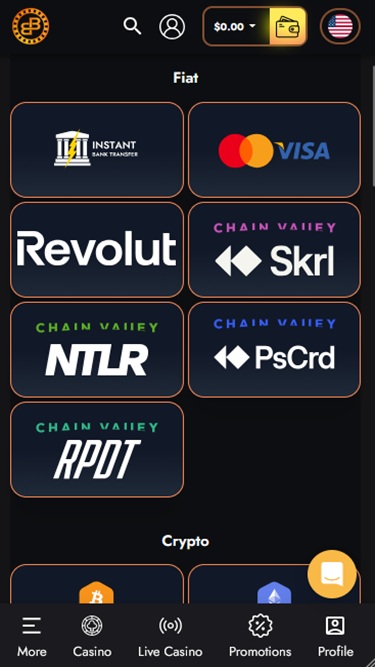 💰 Min Deposit$5 (Crypto)/€20 (Other methods)