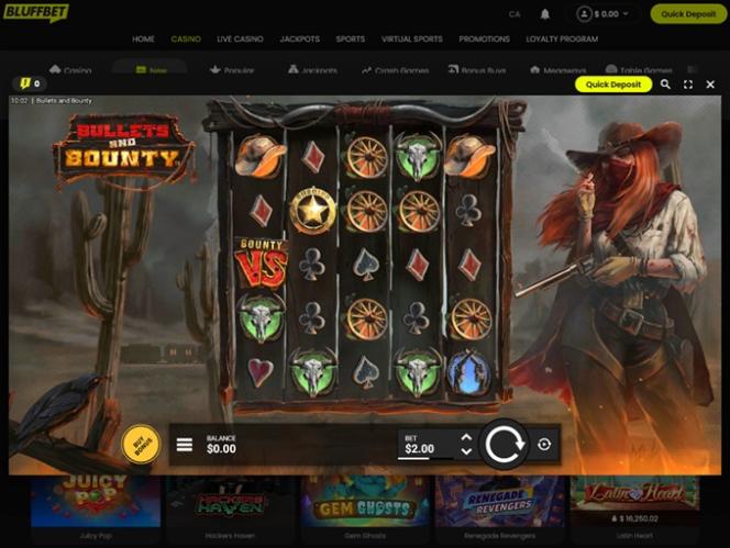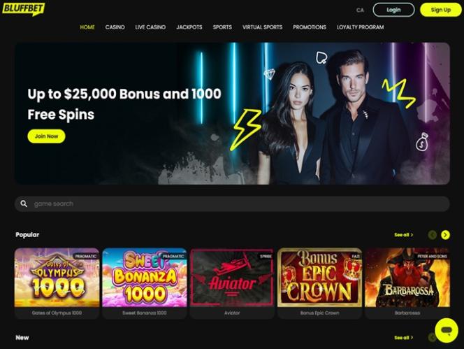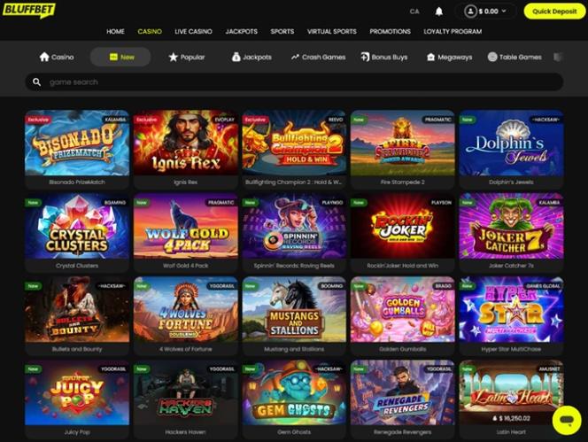 Bluffbet is a gambling site and a massive sportsbook that features a robust selection of casino games and sports betting options. The brand primarily welcomes players from Canada and promises to offer them a comprehensive lineup of gaming options, including real-money slots, crash games, live dealers, and table games, all while featuring a solid promotional plan with bonuses and various rewards.