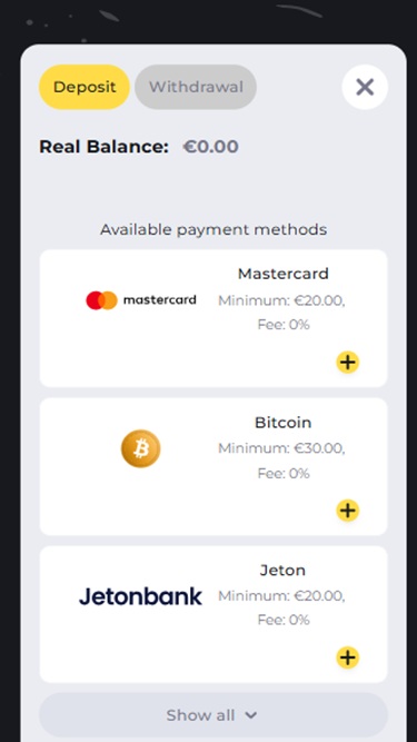 This casino wisely collaborates with some of the most reputable studios and game suppliers out there, such as: Evolution Gaming, Yggdrasil, Playtech…