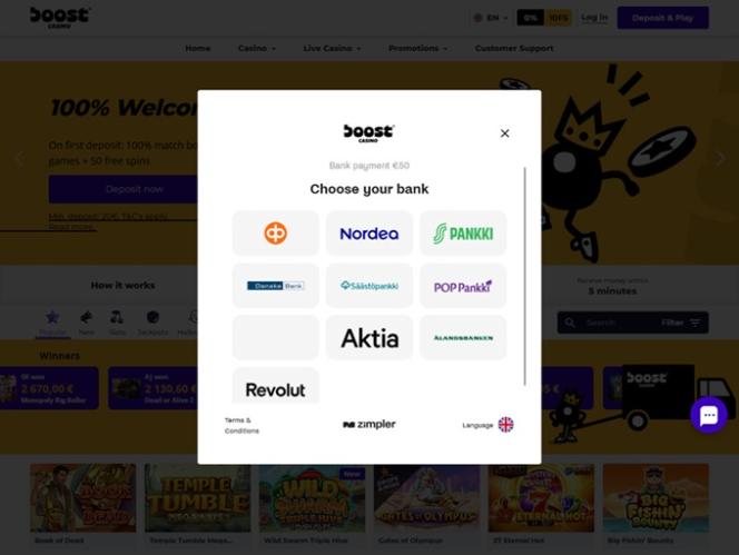 Boost Casino also has a live dealer section, and the way the games are generally categorized makes for a very easy browsing experience, separating new titles and games with jackpots in a standalone category.