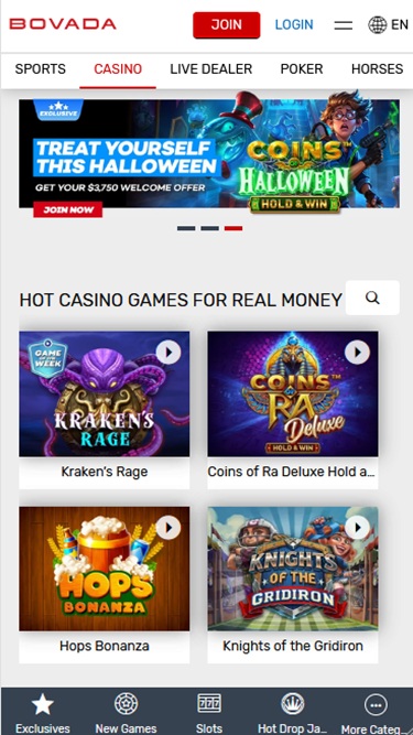 I love the different slot games available at Bovada. This was the first casino I had deposited with. Made numerous deposits with them and won big. My issues came up everytime I tried to withdrawal. They kept saying I had to make another deposit first. Finally got sick and tired of it, so I gave up on them. Maybe one day I'll try them out again.