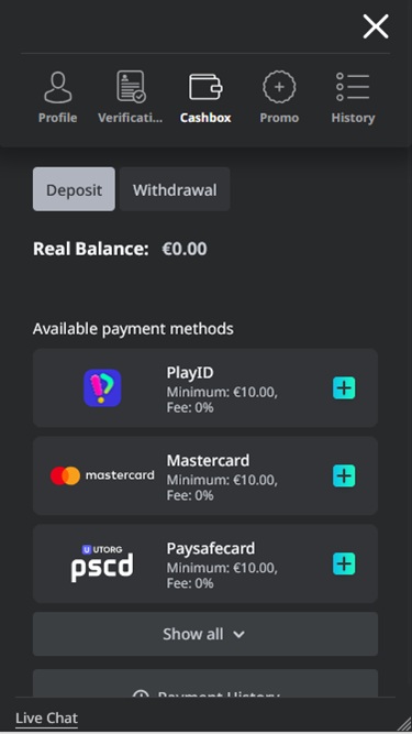 The well-organized game categories are powered by some of the biggest online casino software suppliers such as Evolution Gaming, PlayTech, Quickspin, Yggdrasil...