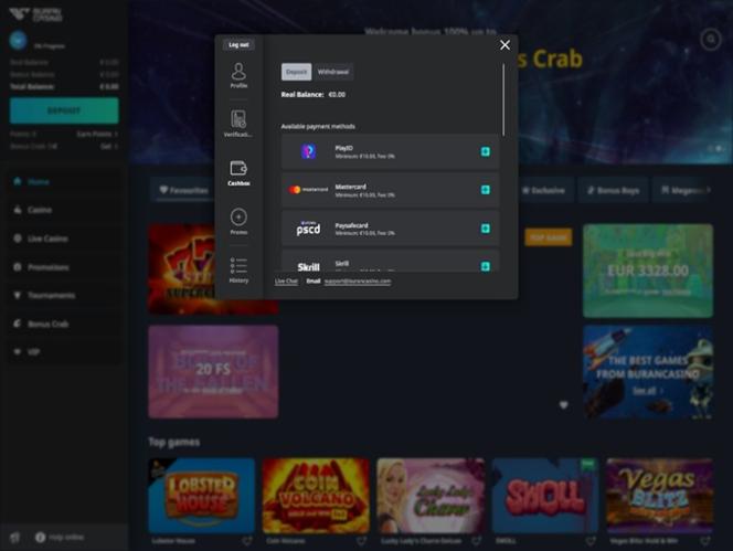Banking options at Buran Casino