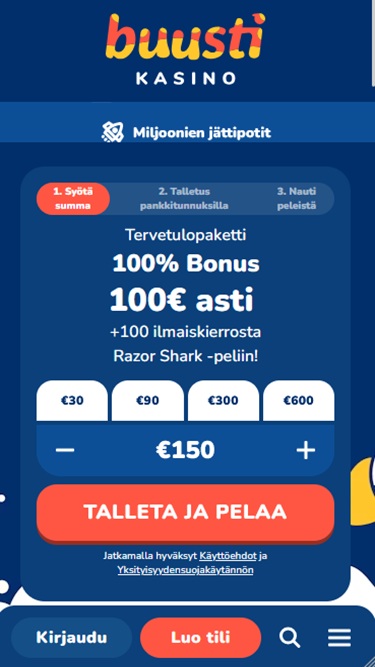 Buusti Kasino operates under the Curaçao license and it is trying to attract people mainly from Finland.