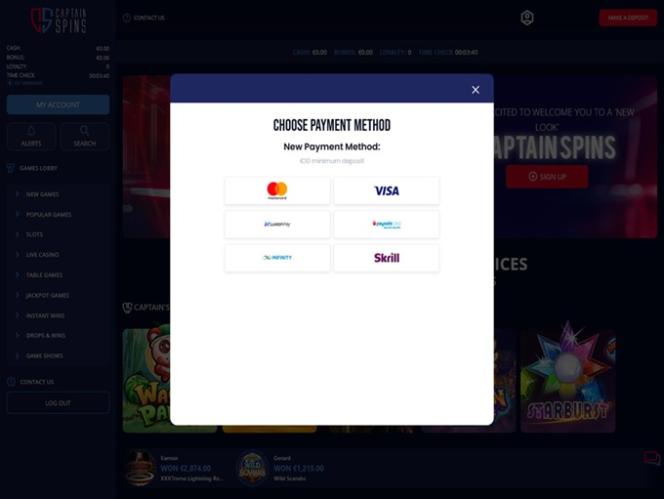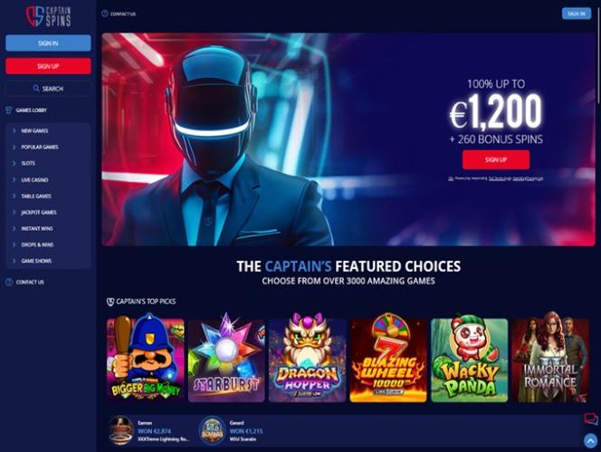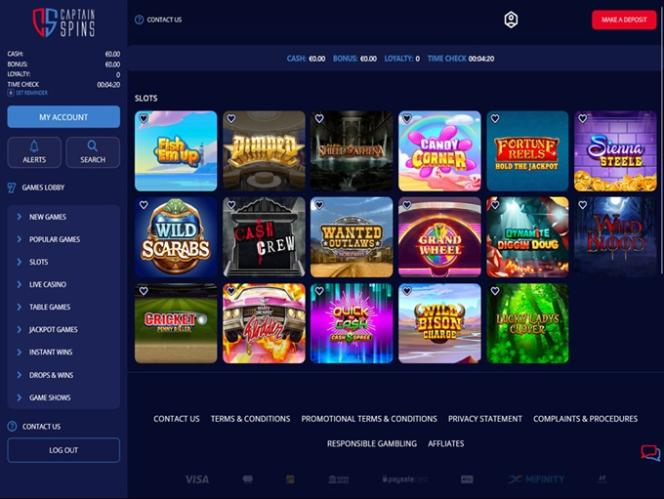 Captain Spins Casino is powered by Microgaming, Net Entertainment, Evolution Gaming, EYECON, Play'n GO, playson, Rabcat, Relax Gaming, Wazdan, Pragmatic Play, Nolimit City, Red Tiger Gaming, Fantasma Games, Kalamba, Triple Edge Studios, BGAMING, Northern Lights Gaming, Stormcraft Studios, Switch Studios, Electric Elephant Games, All41 Studios, Gameburger Studios, Pulse 8 Studios, Neon Valley Studios, Golden Rock Studios, SpinPlay Games, GONG Gaming, Blue Guru Games, On Air Entertainment, Buck Stakes Entertainment, Games Global, Push Gaming, Inspired Gaming, Old Skool Studios, Foxium, Just For The Win, Storm Gaming Technology, PearFiction Studios, Wild Streak Gaming, Slingshot Studios, Fortune Factory Studios, AvatarUX, Crazy Tooth Studio, ReelPlay, Alchemy Gaming, Snowborn Games, Hacksaw Gaming, Max Win Gaming, SilverBack Gaming, Peter And Sons, Aurum Signature Studios, Area Vegas, Wishbone Games, Spribe, Print Studios, HammerTime Games, Four Leaf Gaming, INO Games, Nailed It! Games, Neko Games, Reel Kingdom and Oros Gaming and the site uses a web-based platform to reach you. Players should be able to easily navigate the site and find whatever games they wish. Mobile support is also baked-in, letting you play on smartphones or tablets.Blackjack