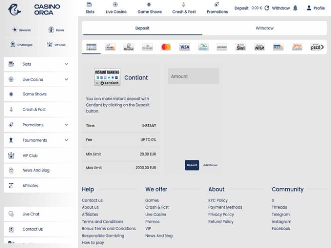 Besides the VIP program, Casino Orca offers exciting slot tournaments for its casino members who would like to try their luck in races and compete with other community members. The operator has ensured that there is always something new for players to participate in. The welcome bonus is also available, and in order to use it, players need to enter the bonus code before making a real money deposit. This bonus is sticky and non-withdrawable.