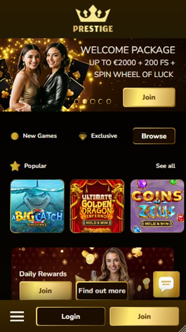 Cashbacks, extra spins, daily rewards, and more await all active players at Prestige Casino. Remember that casino bonuses are subject to certain bonus terms and conditions. Make sure you dedicate time to read them before you decide to redeem an offer. This will help you make better decisions and enjoy even more your time reserved for playing casino games!