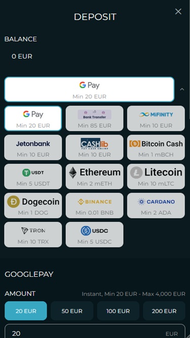 AwesomeI recently made a withdrawal from this casino using cryptocurrency and I have to say I was impressed with how fast and easy the process was. The withdrawal was processed within minutes and the funds were credited to my crypto wallet almost instantly.