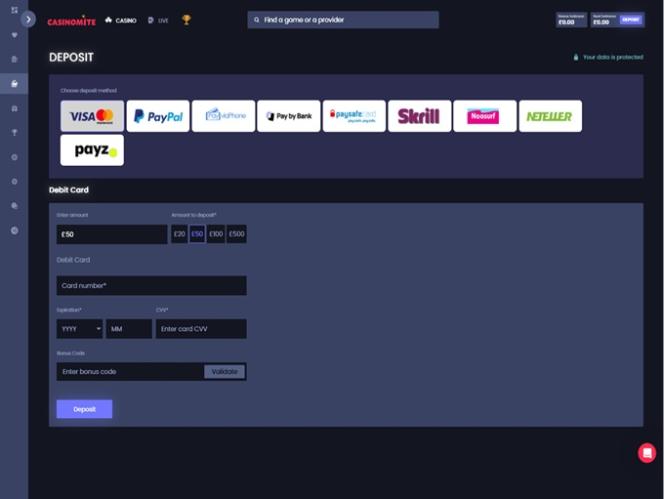 Casinomite is fully licensed and regulated by both the Malta Gaming Authority and Great Britain’s Gambling Commission.
