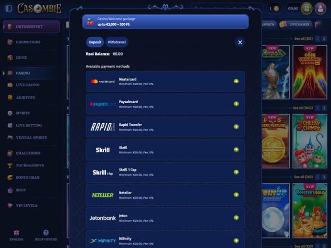 Wanting to optimize its offering for as many different types of players, Casombie casino filled the lobby with a multiverse of promotional offers. There are numerous introductory bonuses, as well as other daily and weekly campaigns.
