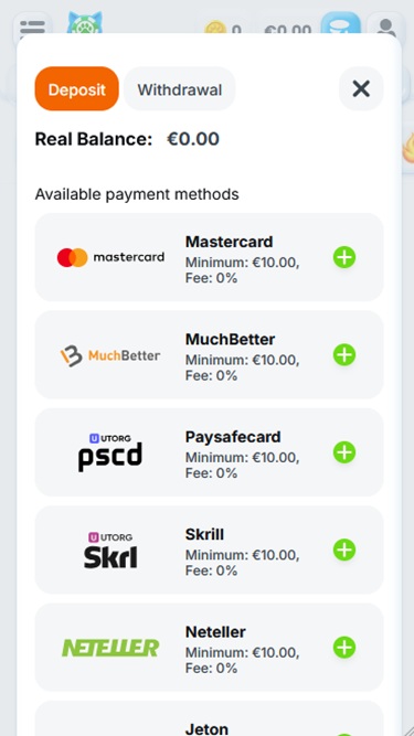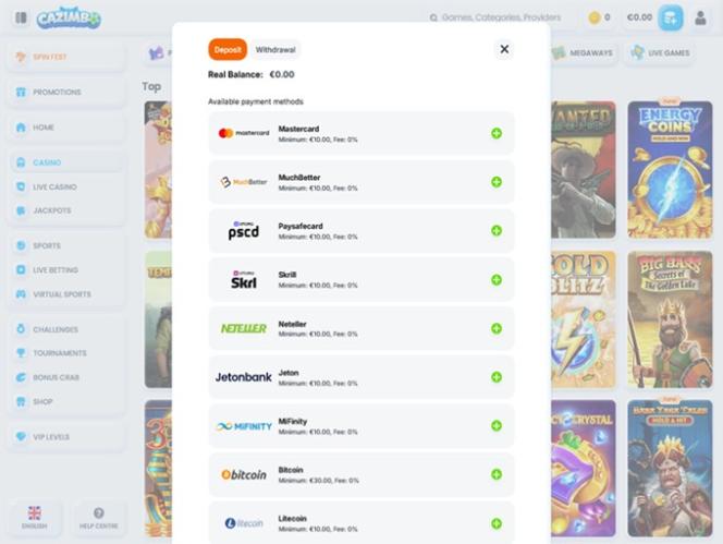 Cazimbo covers all types of casino payment solutions including Bitcoin and other cryptocurrency payment options. Other popular methods of depositing and withdrawing funds such as payment cards, e-wallets, bank transfers etc. are also available.