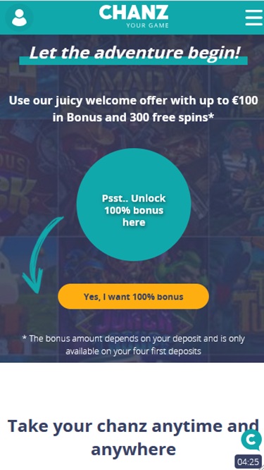 Chanz Casino is powered by Microgaming, Net Entertainment, Big Time Gaming, Evolution Gaming, Genesis Gaming, Play'n GO, Rabcat, Thunderkick, Yggdrasil, Booming Games, Pragmatic Play, Red Tiger Gaming, Skillzzgaming, Fantasma Games, Triple Edge Studios, Northern Lights Gaming, Stormcraft Studios, Switch Studios, Bulletproof Games, All41 Studios, Gluck Games, Gameburger Studios, Pulse 8 Studios, Neon Valley Studios, Golden Rock Studios, SpinPlay Games, Real Dealer Studios, GONG Gaming, Buck Stakes Entertainment, Games Global, 2by2 Gaming, Push Gaming, Old Skool Studios, Foxium, Just For The Win, Reflex Gaming, Storm Gaming Technology, PearFiction Studios, Wild Streak Gaming, Slingshot Studios, Fortune Factory Studios, 4ThePlayer, AvatarUX, Gamevy, Crazy Tooth Studio, ReelPlay, Alchemy Gaming, Plank Gaming, Snowborn Games, Boomerang Studios, Hacksaw Gaming, Gold Coin Studios, Bang Bang Games, Half Pixel Studios, Peter And Sons, Eurostar Studios, Aurum Signature Studios, Area Vegas, Wishbone Games, Circular Arrow, HammerTime Games, INO Games, Nailed It! Games, Neko Games, Reel Kingdom and Oros Gaming, and its games are provided through a web-based instant play platform that allows players the opportunity to register, bank, and play games all through their internet browser. The casino also supports mobile play, which lets players get in on the action through their smartphones and tablets.