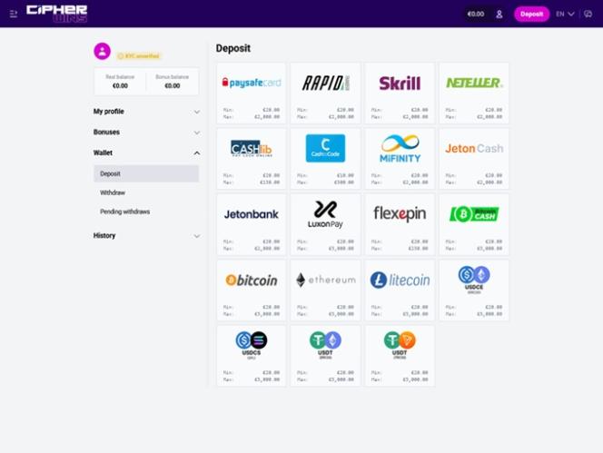 At Cipher Wins, players will be able to participate in the VIP program, with the only caveat being that this is an invite-only system. Once a player proves his loyalty and activity, he will be contacted by the brand’s VIP management team and placed in the program, which will provide him with exclusive rewards such as faster withdrawals, dedicated VIP account managers, and personalised offers.