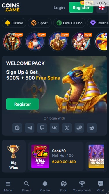 Even though it’s originally built for mobile, this casino platform is optimized for all devices and it won’t disappoint desktop casino players a bit. It is created in accordance with the latest trends and by using the best available tech solutions. Coins.Game grabbed our attention with its vivid design and appealing new-fashioned features and top-class bonuses made us even more curious! But, let’s first check out the casino’s gaming offer.