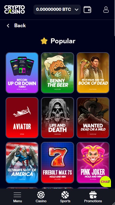 While you won't be able to get assistance through a direct telephone support line, you can always contact a customer support representative by emailing help@cryptocasino.com or utilizing the live chat function.