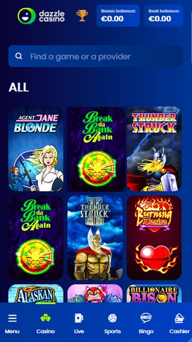 Dazzle Casino is a big casino which provides huge section of nice games from different game providers! so which one u search they will have it for sure there!:) only min point is there 50X wager on welcome bonus which is pretty high!:( 30-35 is average on casino's would be better if they also did that;) support staff is good! always on the helping hand:) payments are really good too! just a good casino where you can play safe! and enjoy your time with there huge section of games;)
