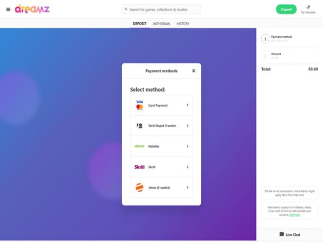 I just signed up in Dreamz casino, because the game navigation was very impressive by categorizing the games in many ways. It was good for players to choose to their preference. But, unfortunately, I don't have any deposit method available in this casino nor am I able to open the games. I was able to register in this casino without problems, but it actually seems not to allow players from my country. Good luck for others.