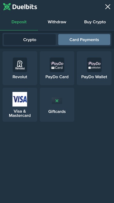 As we mentioned earlier the Duelbits online casino integrates popular crypto solutions for gamers who wish to conduct their banking operations without much fuss and with complete anonymity.