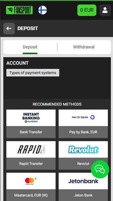 Regarding customer support, players can contact a customer support representative via the live chat service or by emailing support@fan-sport.com.