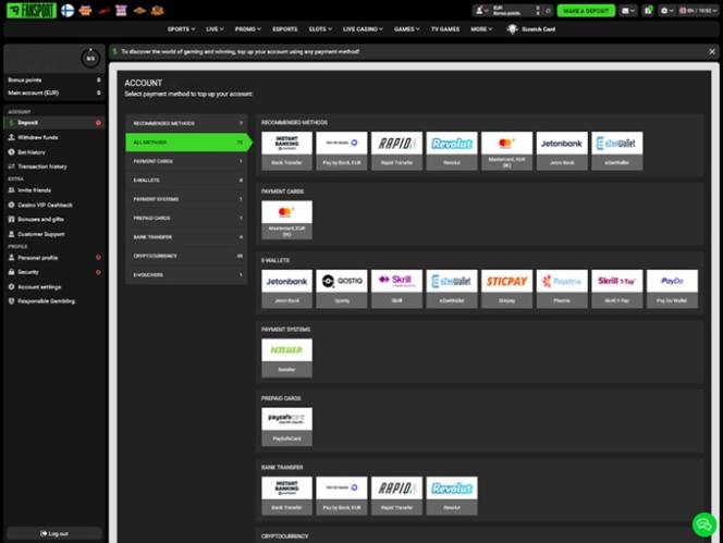 Furthermore, Fansport Casino boasts numerous other games, including crash games, bingo, scratch cards, hunting games, and fishing games. Still, it also has a handful of originals you can’t play anywhere else. Considering everything, it’s evident that the operators have dedicated much of their attention to game variety, which players will undoubtedly appreciate.