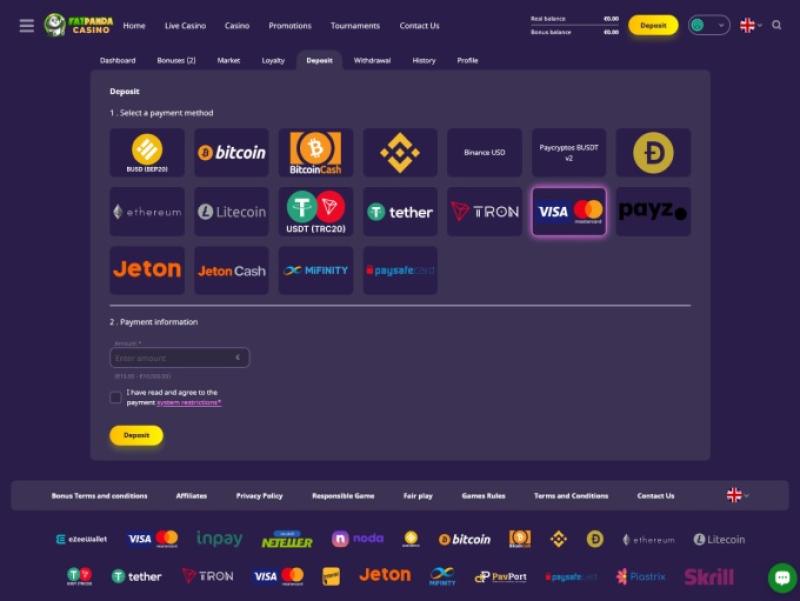 Apart from those, there are also crypto payment methods available. Currencies such as Bitcoin, Bitcoin Cash, Dogecoin, Ethereum, Litecoin, Tron, and Tether are usable for both withdrawals and deposits.