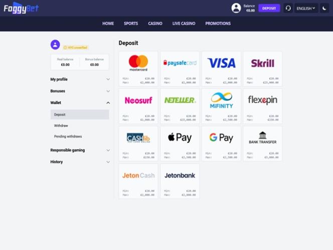 FoggyBet Casino has the right to refuse to register a new player’s account without providing a reason for such a decision. Also, it has the right to close any already registered account at its sole discretion.