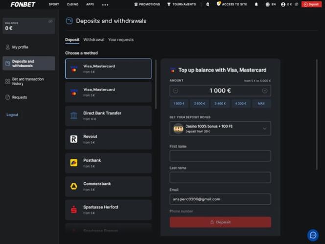 p>Fonbet Casino is a modern gambling site that primarily welcomes players from Germany and offers a sizeable selection of games and sports betting options. The brand features a robust lineup of real money slots, live dealers, table games, and instant crash games, all while offering several bonuses, promotions, and tournaments players can participate in.
