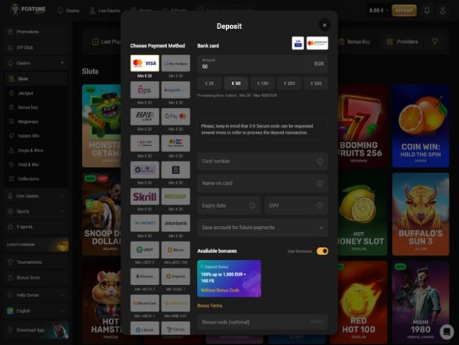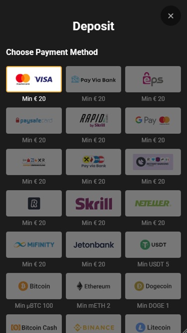 Payments can be made using various trendy digital coins. In case you use cryptocurrencies like Bitcoin for your payment transactions, always be aware of the casino limits. Depositing an amount other than the minimum required amount may result in transactions that cannot be finalized. Also, keep in mind that deposits and withdrawals made through certain payment cards are commission-free and instant.