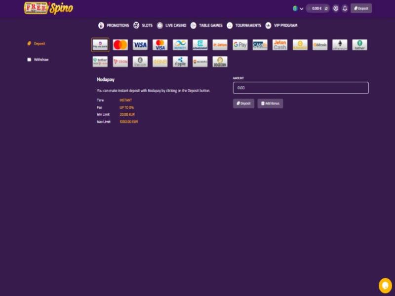 Reaching a wide number of players isn’t only done by implementing a lot of games into your library. Casinos can also broaden their audiences by allowing them to use multiple different payment methods, and that’s exactly what Free Spino Casino did.