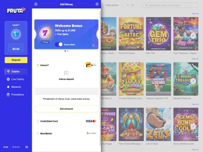 Banking options at Fruta Casino