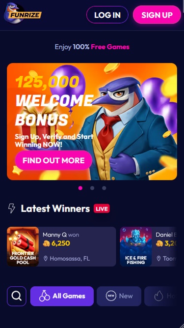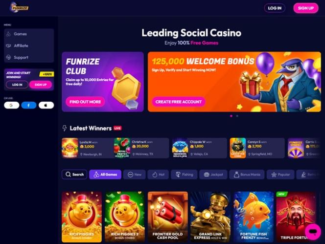 Funrize Casino is a social website offering casino-like games to players across the United States, except for Wyoming, Idaho, Washington (DC), Utah, and Michigan.