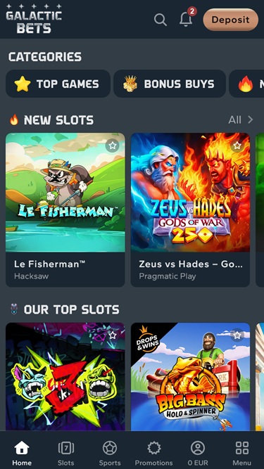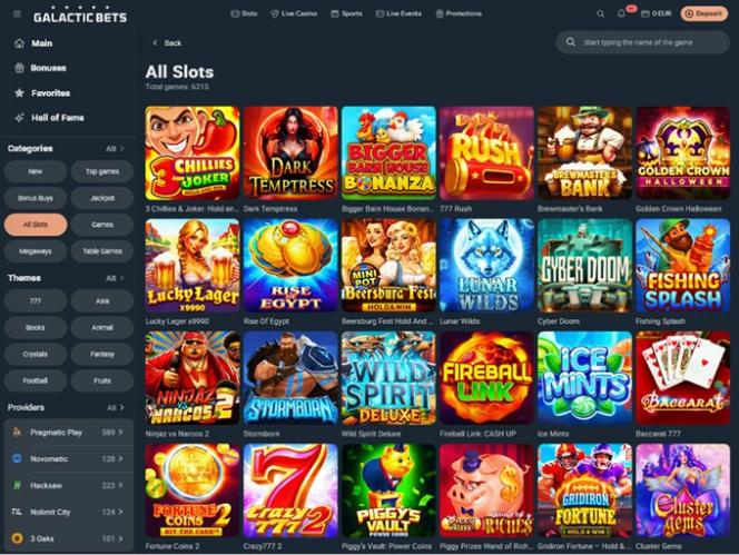 GalacticBets is an online casino that offers an incredibly vast library of casino games, including thousands of real-money slots, live dealers, table games, and instant-crash games, as well as an enormous sports betting section. The brand also offers numerous promotions and bonuses, and invites players from Germany, Austria, Switzerland, Australia, and Canada to give them a try!