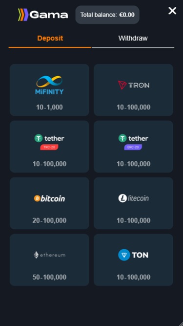 Gama Casino offers its players the ability to use popular payment methods such as Visa, Mastercard, Skrill, Neteller, Jeton, and Rapid. If you’re looking to use cryptocurrencies as your primary payment method, then you’ll able to do so as the operators allow it.
