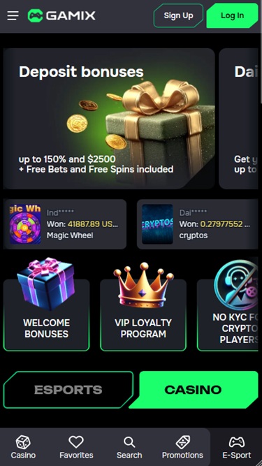 Even though no regulatory jurisdiction currently licenses Gamix, we haven’t encountered any reports of suspicious activity. The operator also provides users with all the pages of a regulated brand, excluding responsible gambling. Scrolling down to the bottom of the home page, you can access terms and conditions, the privacy policy, customer support, and bonus terms of service.