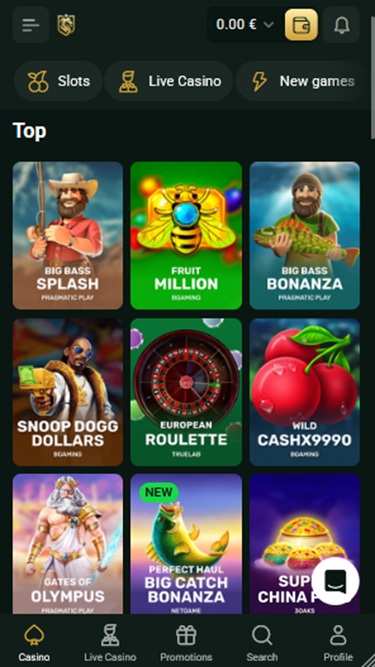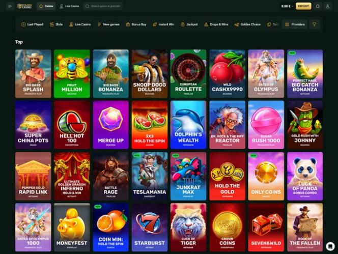 There are Casino and Live Casino sections, and here are some of the available categories: Slots, Jackpot, Bonus Buy, Megaways, Instant Win, Game Show, Roulette, Blackjack, Baccarat, Poker, and more.