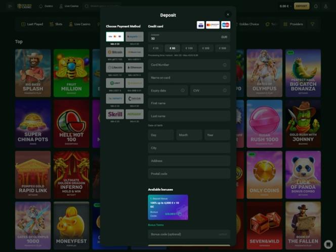 As we have mentioned, the promotional section is packed with excellent bonus options and includes a welcome package for first-time players that can be redeemed with the first four deposits at Goldex Casino. An inviting set of regular casino bonuses for other active members will definitely keep them busy and engaged.