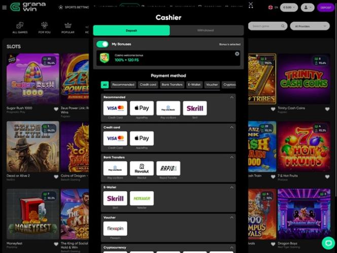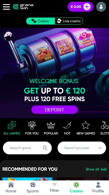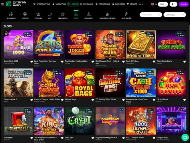 GranaWin is a well-rounded online casino that opened its doors in 2024 and has attracted a large audience of Canadian, German, Swiss, and Austrian players to its website by offering an extensive library of casino games and sports betting options, along with a robust promotional program featuring generous bonuses and prizes. The brand features a massive library of slots, live dealers, table games, and crash games for gamblers to enjoy.