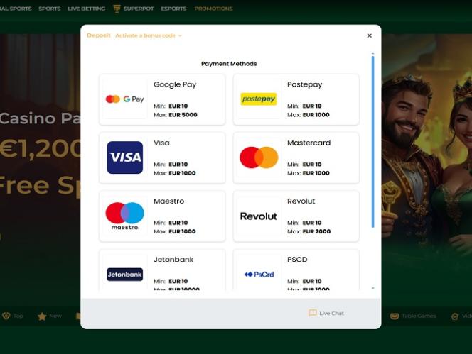 At the very beginning, let’s mention that registering a new account is a straightforward and simple procedure that you will be able to finish quickly and get access to the casino’s library that comes with a game variety suitable for all first-time players as well as experienced gamblers. Let’s also mention that virtual sports and sports betting options are included, as well as numerous other gambling options. Some of the casino categories are Book of Slots, Megaways, Bonus Buy, Featured, Casual, Jackpots, Table Games, Hot, Cold, and more. A live casino section is also available.