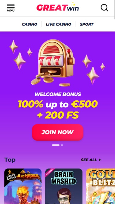 GREATwin Casino has a clean, minimalistic design with a lot of attractive details. Everything is at its place around here and the inviting gaming offer holds the central area of the site.
