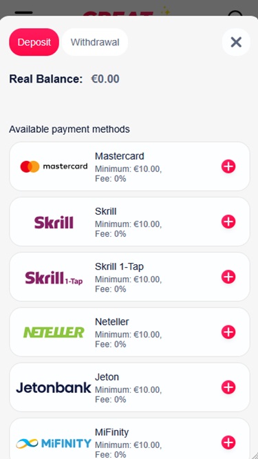 GREATwin promotes responsible online gambling and advises punters to play safely. The players that may show that gaming affects them negatively should activate the self-exclusion option by getting in touch with the customer care department via email.