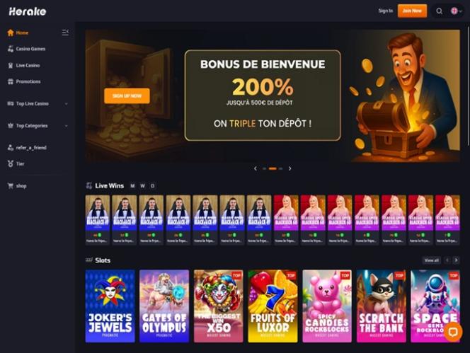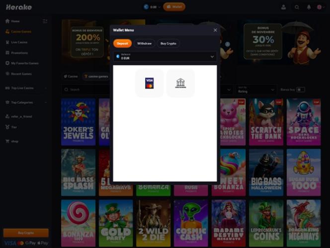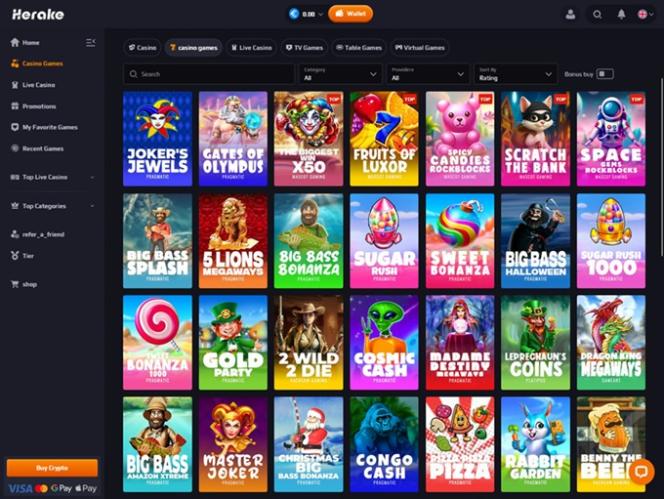 Herake follows all industry trends and hosts a massive and diverse slot collection tailored to suit every type of gambler, no matter their skill level. The casino's repertoire includes timeless casino classics and cutting-edge releases, ensuring there's something to captivate and entertain every player.