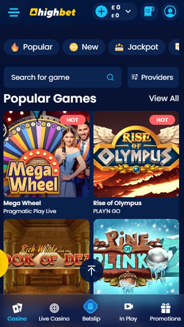 The operator collaborates with popular online casino software developers that provide Highbet with the full range casino games. Many well-known names found place on the casino’s list of game suppliers (Evolution Gaming, Ezugi, NetEnt, Microgaming, Yggdrasil...).