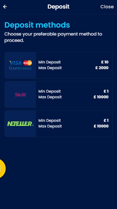 The casino platform has the right sidebar main menu that can be expanded to show section labels or minimized to show icons that symbolize the actual game categories. The site’s color pattern includes royal blue and yellow, giving life to the light mode background used at this gaming site.