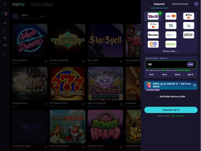 Do not forget to review the bonus terms and conditions, as this may help you have even more fun and a better gaming experience at HighFlyBet.