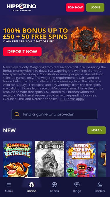 HippoZino Casino is an online betting site that was founded in 2013 by ProgressPlay Ltd. The casino has a huge gaming library and is known for its fast payout of winnings, although the high wagering requirements on promotions may be off-putting to some.