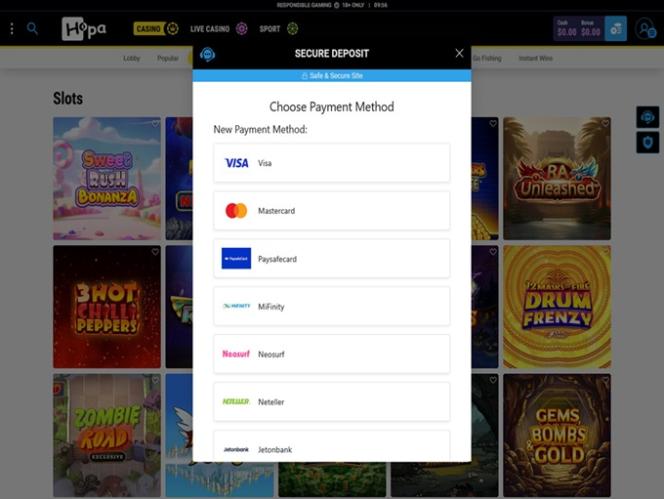 Hopa Casino is powered by Microgaming, Net Entertainment, 1x2gaming, Barcrest, Big Time Gaming, ELK Studios, Evolution Gaming, EYECON, lightningboxgames, Oryx, Play'n GO, Relax Gaming, Thunderkick, Wazdan, Realistic Games, Stakelogic, Pragmatic Play, Red Tiger Gaming, IGT, Spinomenal, Red Rake Gaming, Fantasma Games, FunFair, SYNOT Games, FUGA Gaming, Revolver Gaming, Skywind, Triple Edge Studios, BGAMING, Northern Lights Gaming, Stormcraft Studios, Switch Studios, All41 Studios, Gluck Games, Gameburger Studios, Slot Factory, Neon Valley Studios, Golden Rock Studios, Swintt, Shuffle Master, SpinPlay Games, HungryBear Gaming, GONG Gaming, Blue Guru Games, On Air Entertainment, Buck Stakes Entertainment, Design Works Gaming, Games Global, Bally Technologies, Blueprint Gaming, Endemol Games, Leander Games, Merkur Gaming, NextGen, NYX Interactive, Push Gaming, Tom Horn Gaming, WMS, Inspired Gaming, Gaming Realms, SG Interactive, Red7Mobile, Scientific Games, Side City Studios, Reel Time Gaming, Bally Wulff, Iron Dog Studio, Foxium, Betdigital, Just For The Win, The Games Company, Storm Gaming Technology, PearFiction Studios, Wild Streak Gaming, Slingshot Studios, Fortune Factory Studios, 4ThePlayer, AvatarUX, Gamevy, Crazy Tooth Studio, YoloPlay, ReelPlay, AGS Interactive, Alchemy Gaming, Black Pudding Games, Snowborn Games, Boomerang Studios, Gold Coin Studios, Slotmill, Peter And Sons, Aurum Signature Studios, Lucksome Gaming, Area Vegas, RAW iGaming, Wishbone Games, Print Studios, HammerTime Games, Four Leaf Gaming, INO Games, Nailed It! Games, Neko Games, Reel Kingdom, Oros Gaming and Light & Wonder, and its games are provided through a web-based platform that allows for play through your internet browser. A mobile site is also available for those who want to play on their smartphones and tablets.Blackjack