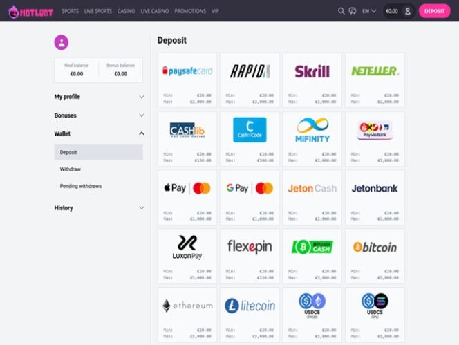 As soon as we entered the first thing that caught our eye was just how good the overall appearance of the HotLoot Casino’s site feels. Their graphic department seems to have found just the right color scheme to provide for an eye – pleasing experience, but not only that, the entire interface runs quite smoothly regardless of the device we used.