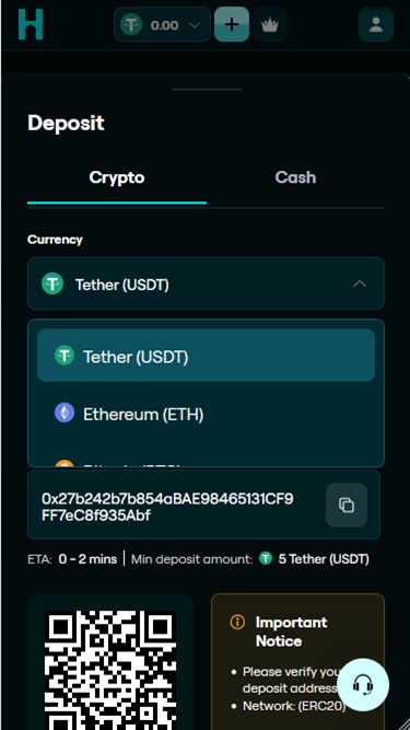 The casino supports two fiat currencies that can be used for depositing and withdrawing which are the US Dollar and Euro