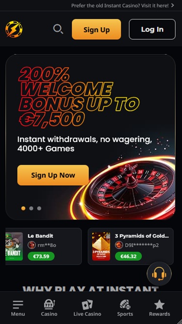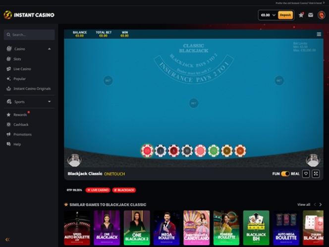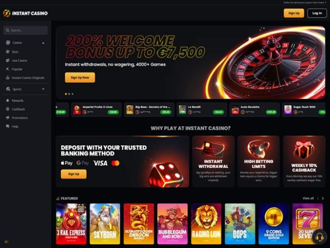 Instant Casino is an online casino and sportsbook website licensed and regulated by the Curacao Gaming Control Board. Players from the United Kingdom, Canada, Netherlands, Germany, Sweden, and Italy are the main focus of this iGaming brand, and its platform is localized in Arabic, German, Greek, English, Spanish, Finnish, French, Indonesian, and several other world languages, which is an amazing option for international gamblers.